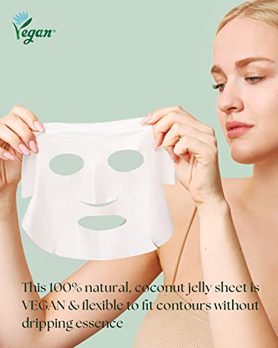 🌿TIGHT-FIT, PREMIUM GEL SHEET – Transparent, jelly-like material is biologically cultivated from 100% coconut juice and called Biocellulose. It tightly hugs your face contours and the serum does not run down the neck, effectively delivering nutrients and enabling you to move around
